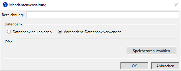 Klicken Sie auf die Schaltfläche Neu. Es öffnet sich ein Fenster zur Neuanlage des Mandanten.