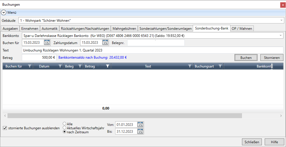 SmartImmo 2026 > Bedienerhilfe > Buchen > Rücklagen buchen > Rücklagen vom Gebäudekonto auf Rücklagenkonten umbuchen >