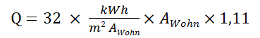 Steht dabei nur für die Einheit, d.h. zur Berechnung des kWh-Bedarfs für das Warmwasser werden die Einheiten gekürzt zu Q = 32 x Wohn- oder Nutzfläche kWh |