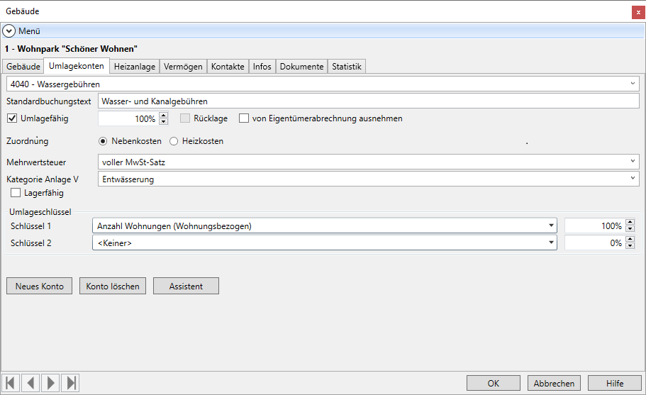 Verwendungsbeispiel für umlagefähige Umlagekonten