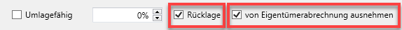 Rücklage = Aktiviert + von Eigentümerabrechnung ausnehmen = Aktiviert