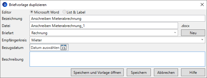 Briefvorlage duplizieren