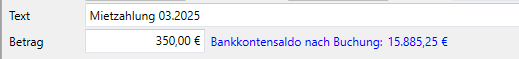 Jedes Buchungsfenster mit Ausnahme der Automatik-Buchung besitzt eine Saldo-Vorschau für Buchungen auf Bankkonten.