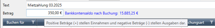 Tooltip im Betragsfeld der Buchungsfenster
