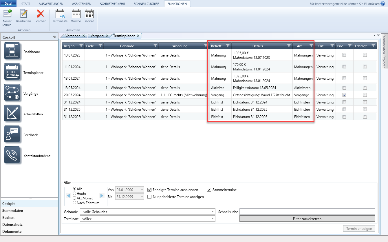 Termine der Vorgangsverwaltung über Terminkalender bearbeiten
