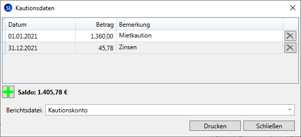 Mit SmartImmo 2026 können Sie nicht nur die vom Mieter erhaltene Kaution erfassen, Sie können vielmehr auch die Zinsgutschriften erfassen und so das gesamte Kautionskonto dokumentieren.