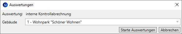 Es öffnet sich das Fenster Auswertungen, in dem Sie das Gebäude auswählen.
