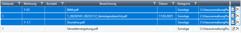 Um einzelne Dokumente getrennt voneinander zu markieren, drücken Sie nach dem Markieren der ersten Listenzeile die Strg-Taste.