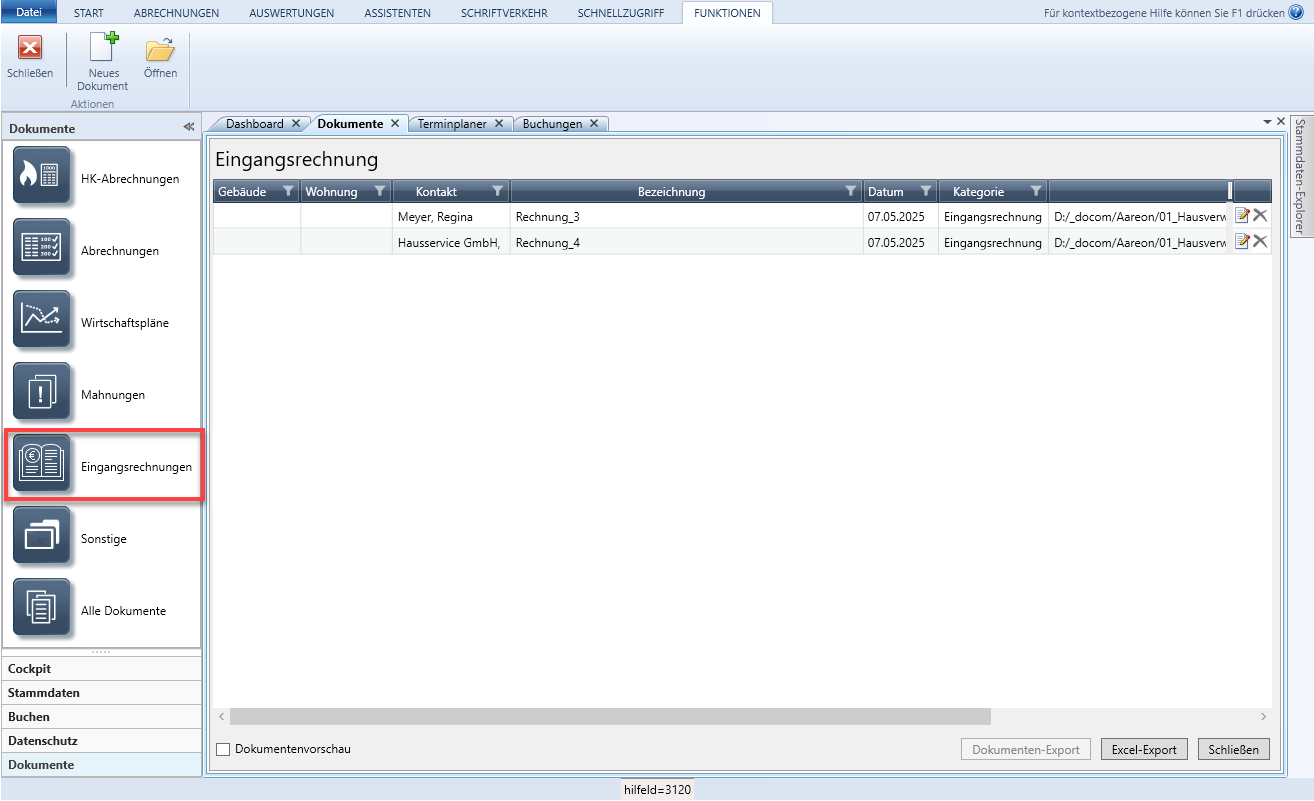 Eingangsrechnungen im übergreifenden Bereich Dokumente